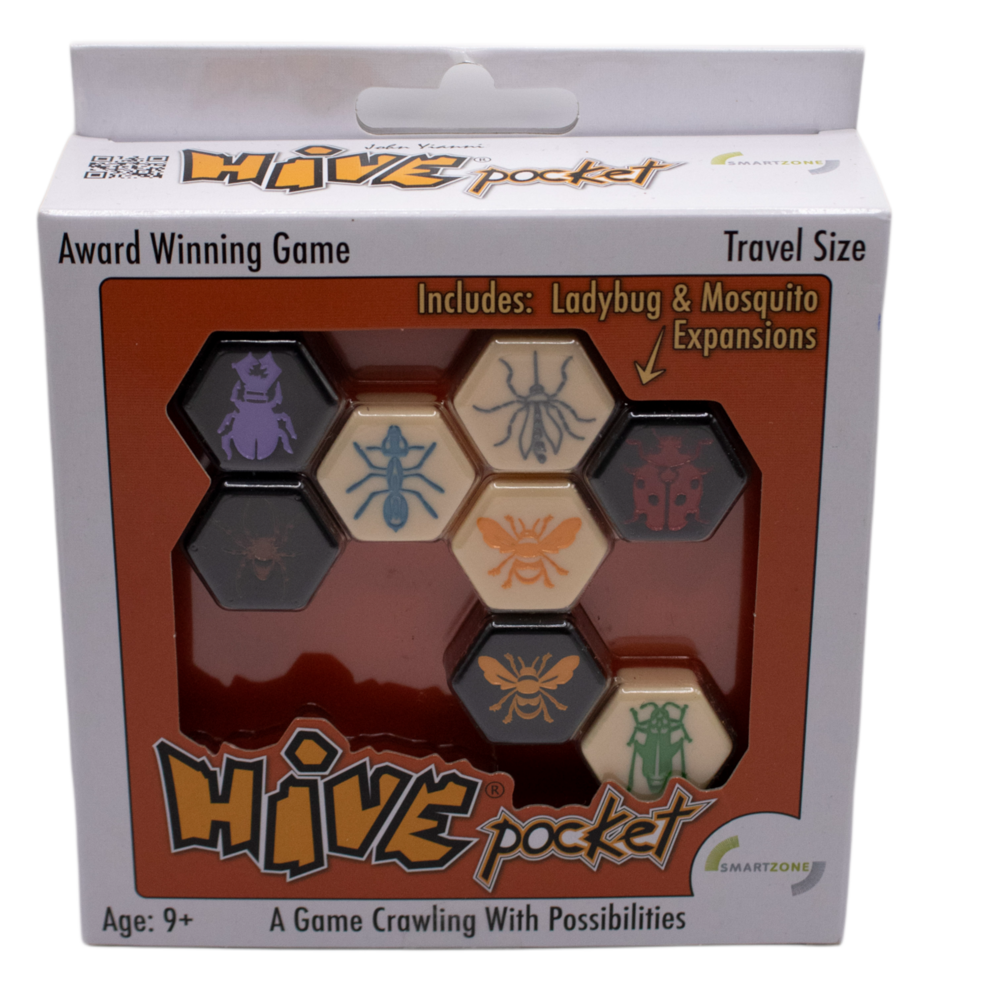 Award-winning Hive in ultra-portable format. Includes Mosquito & Ladybug expansions. Only 200g. Perfect for travel, camping, flights. Ages 9+. 2 players.