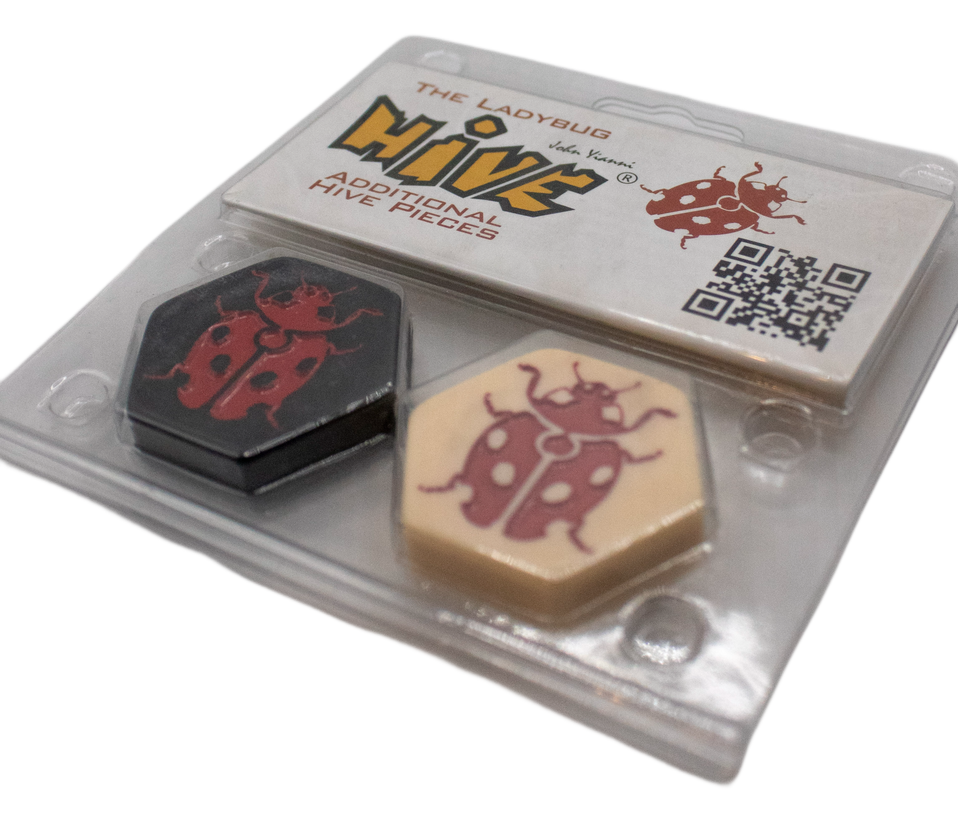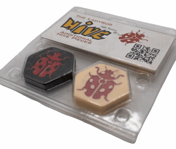 Gameplay: The Ladybug is a versatile Hive bug, it can move up and over other pieces into unoccupied spaces. The Ladybug can also change direction when moving allowing it to get to positions that other pieces cannot reach.